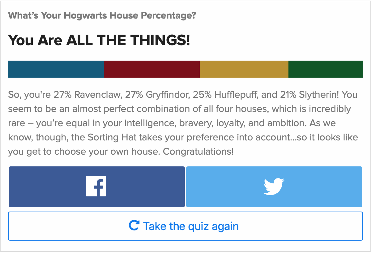 What Is Your Hogwarts House Percentage Buzzfeed Quiz Sarah Chappell X - Which hogwarts house do you belong in?